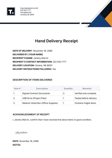 Download Hand Delivery Receipt Template PDF ManyBooks